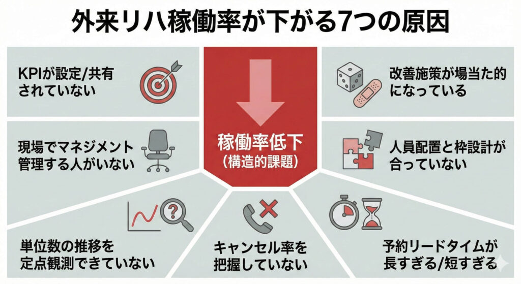 外来リハの稼働率が上がらない原因7つ|まず見るべきKPIを解説