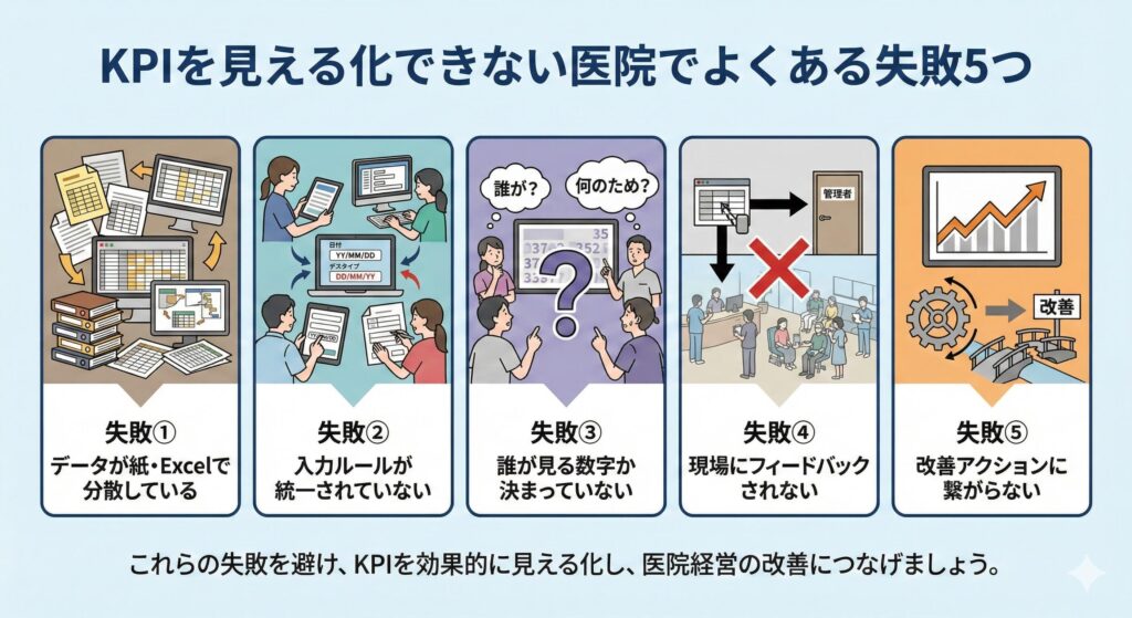 また、院長と現場スタッフで見ている指標が異なり、改善の方向性が噛み合わないケースも少なくありません。