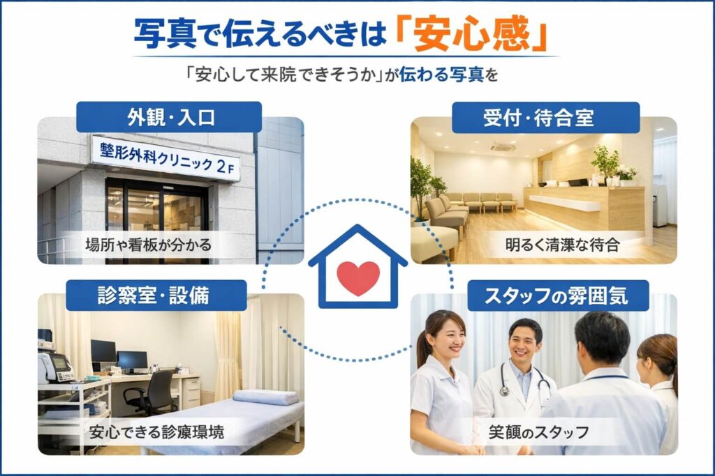 - 写真の枚数と種類:10枚以上、外観・待合室・スタッフなど多様な写真があるか
