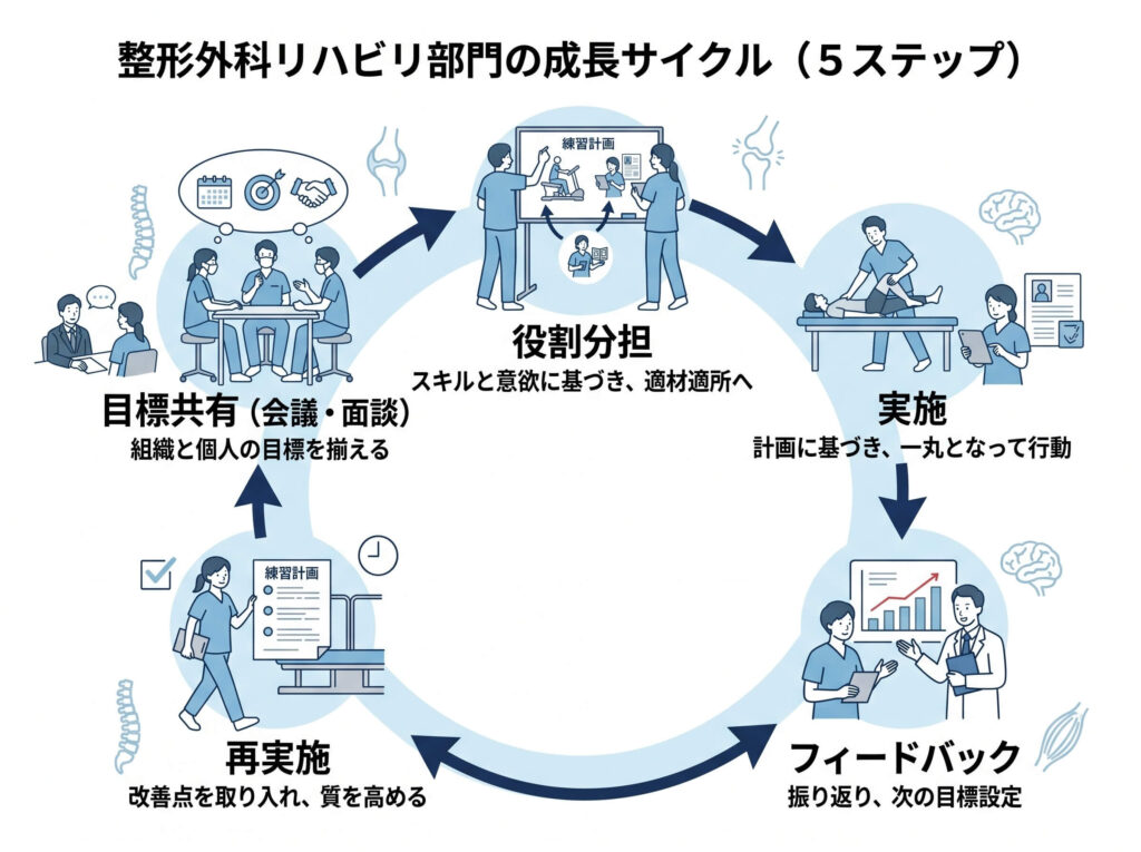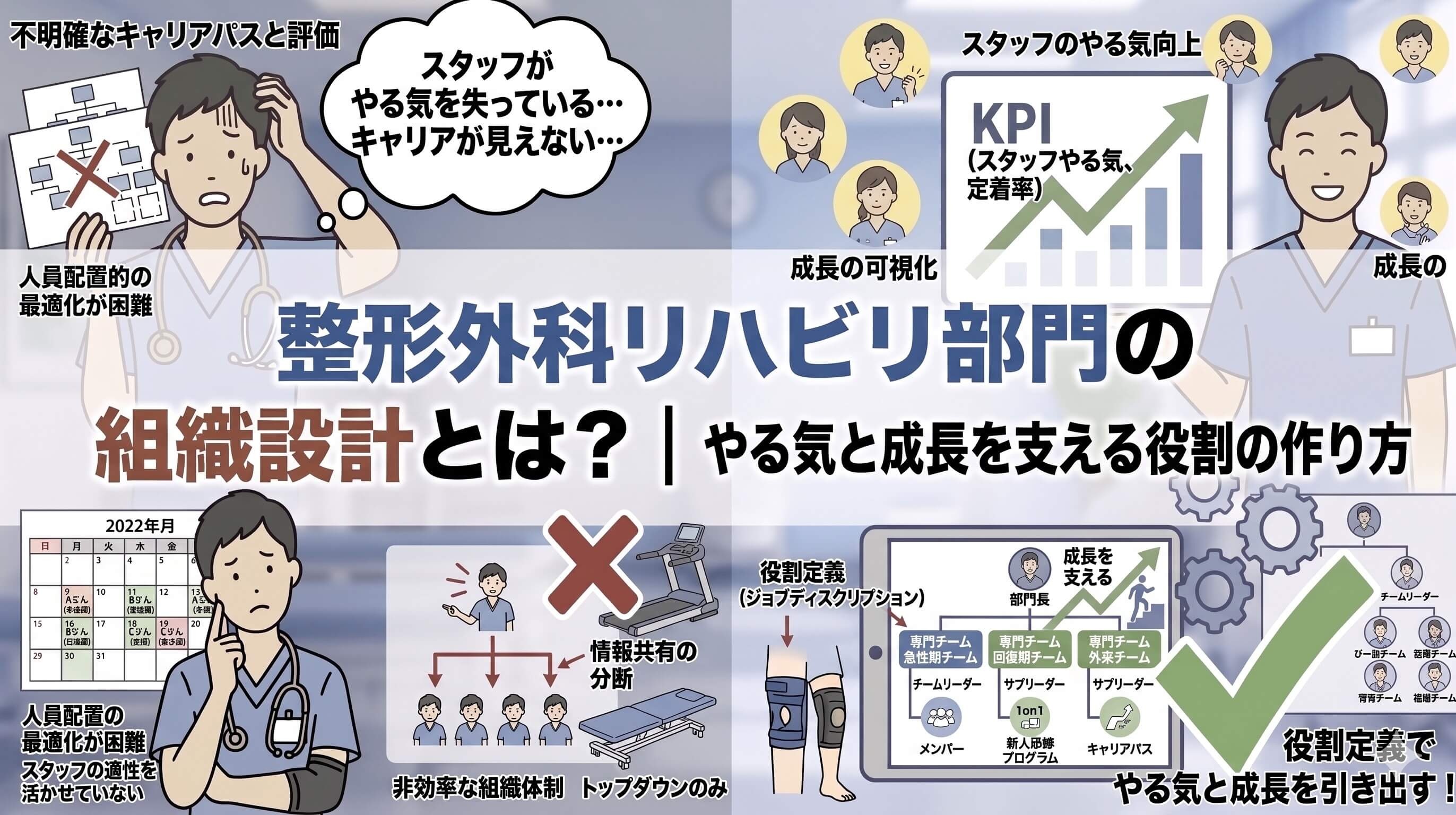 整形外科のリハビリ部門の組織設計で大切なのは、肩書きを置くことでも、上から役割を割り振ることでもありません。