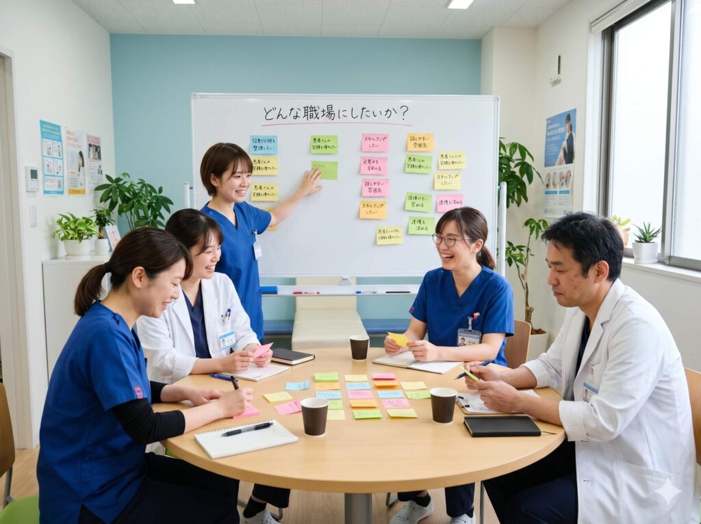 特に重要なのは、院長やクリニックのビジョンを共有したうえで、現場のスタッフ自身が「どんな職場にしたいか」「そのために何が必要か」を話し合いながら役割を整理していくことです。私のコンサル経験上でも、自分たちで考えて決めた内容は納得感が高く、その後の運用が進みやすい傾向があります。